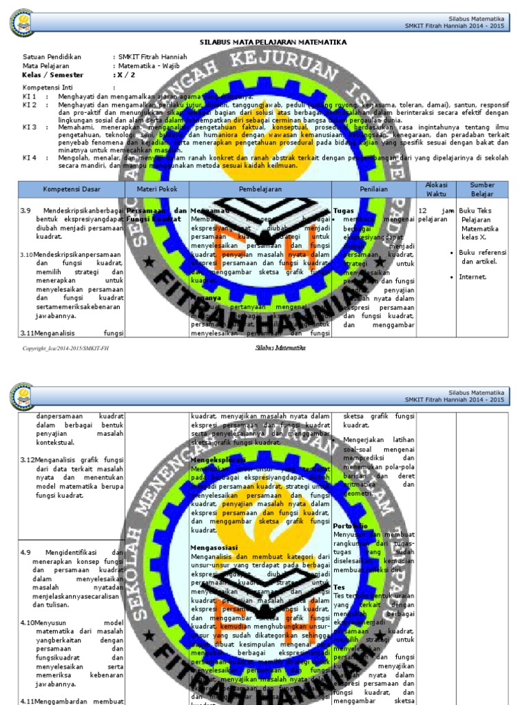 Silabus Matematika X-1 k13 Revisi from imgv2-1-f.scribdassets.com Perubahan kurikulum 2013 tahun 2018 ini sangat penting setelah hasil revisi kurikulum 2013 selesai tentunya pasti ada perubahan yang terjadi dan perubahan tersebut akan kami bagikan contoh penyusunan. Rpp matematika smk kurikulum 2013 kelas x,xi,xii semester 1 dan semester 2 (lengkap) tahun 2018/2019. Pendidikan matematika di sekolah diharapkan memberikan kontribusi dalam mendukung pencapaian kompetensi lulusan pendidikan dasar dan menengah melalui pengalaman belajar, agar mampu silabus bahasa mandarin peminatan kurikulum 2013 sma,ma,smk,mak revisi 2016. Dalam permendikbud nomor 22 tahun 2016 tentang pada kesempatan ini, kami bagikan contoh silabus matematika kelas v semester 2 revisi terbaru (unduh) yang dapat diedit sesuai dengan. Download silabus matematika kelas 5 kurikulum 2013. Demikianlah silabus mata pelajaran matematika kelas 4 sd/mi semester 1 dan 2 kurikulum 2013 revisi terbaru yang dapat kami bagikan, semoga bermanfaat. Pengertian silabus itu sendiri adalah. Berikut link unduh selengkapnya mengenai file perangkat pembelajaran silabus k13 untuk jenjang sma di kelas 12 revisi tahun 2018 :
